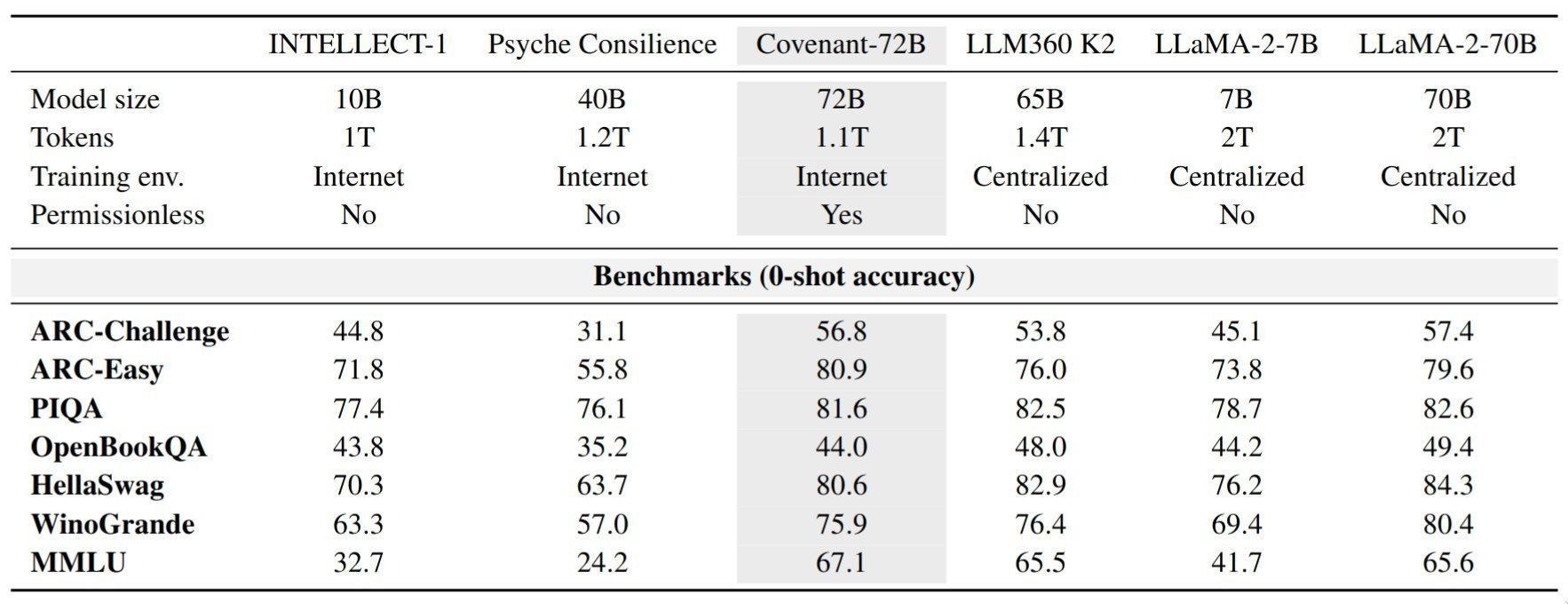 Templar says Covenant-72B performs competitively with well-known open-source models trained in traditional data centers.