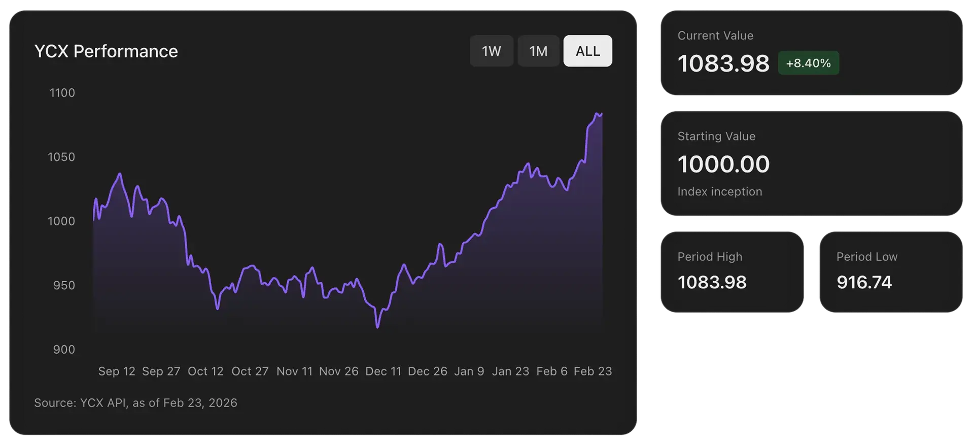 YCX attempts to address this by using a market cap weighted methodology that incorporates both price and supply, with the aim of producing a more representative view of subnet market performance.